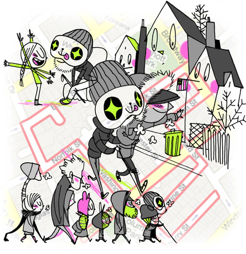 The performance is accompanied by video/sound/and drawings captured and created while blindly following a word map that spells "see" around MEME gallery.