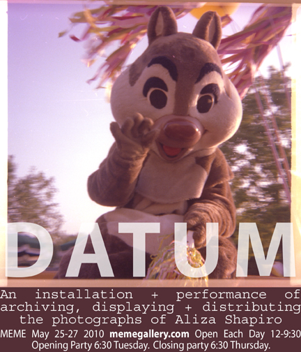 an installation and performance of archiving, displaying and distributing the photographs of Aliza Shapiro.